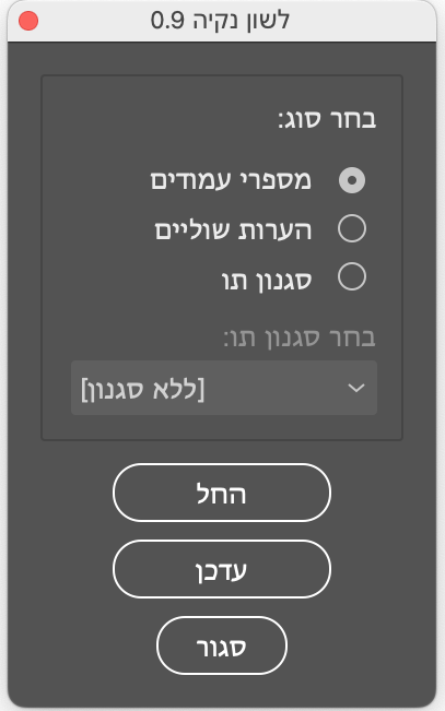 מיספור עמודים *